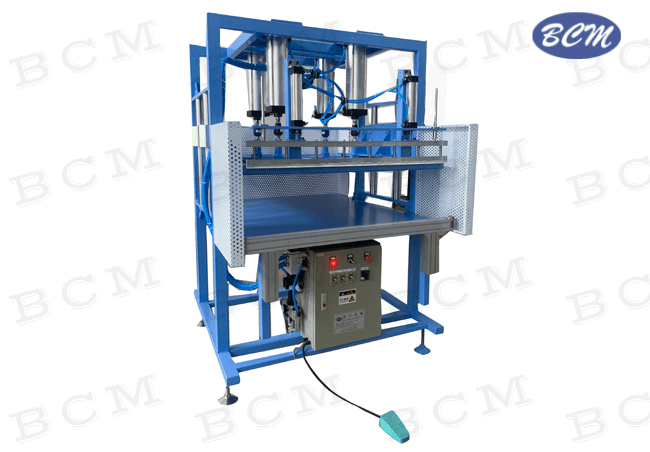 用于各种枕头的压缩及包装塑料袋封口工序,包括压缩,打卷两种处理方式,从而使枕头的运输成本降低,提高工作效率,操作安全方便。